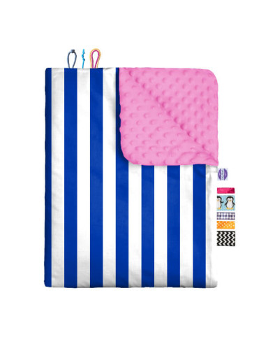 Pasy granatowe - Zestaw - Kocyk Minky + Poduszka Minky - dowolny rozmiar